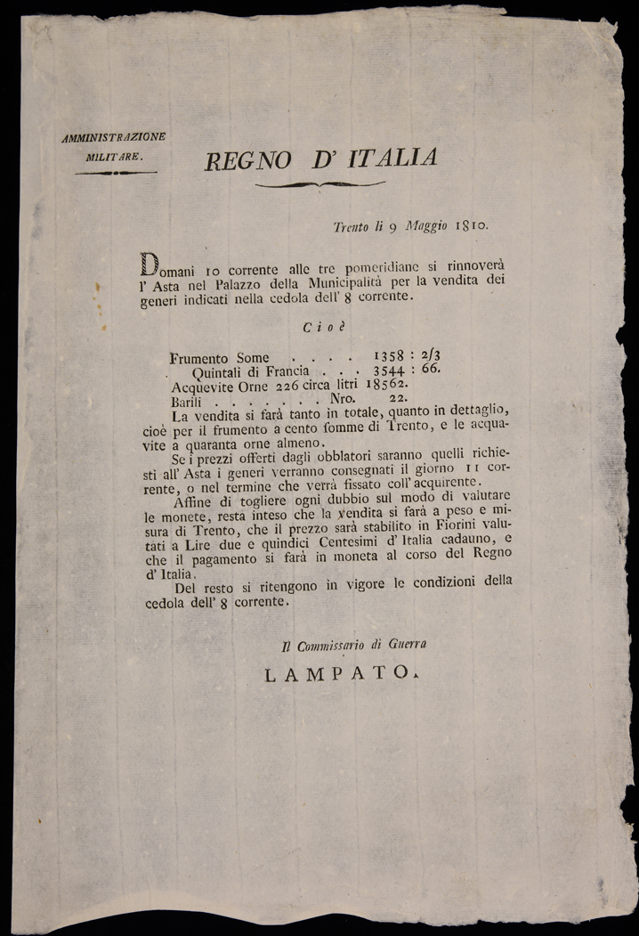 Regno d'Italia. Trento li 9 maggio 1810