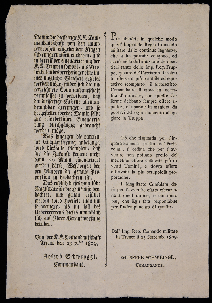 | Damit die diesseitige K.K. Commandantschaft von den ununterbrochen eingehenden Klagen sich einigermassen entheben ... |