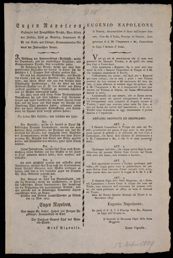 | Eugen Napoleon Erzkanzler des französischen Reichs, Vice-König von Italien, Fürst zu Venedig, Lieutenant S.M. des Kaiser und Königs, Kommandirender General der italienischen Armee |