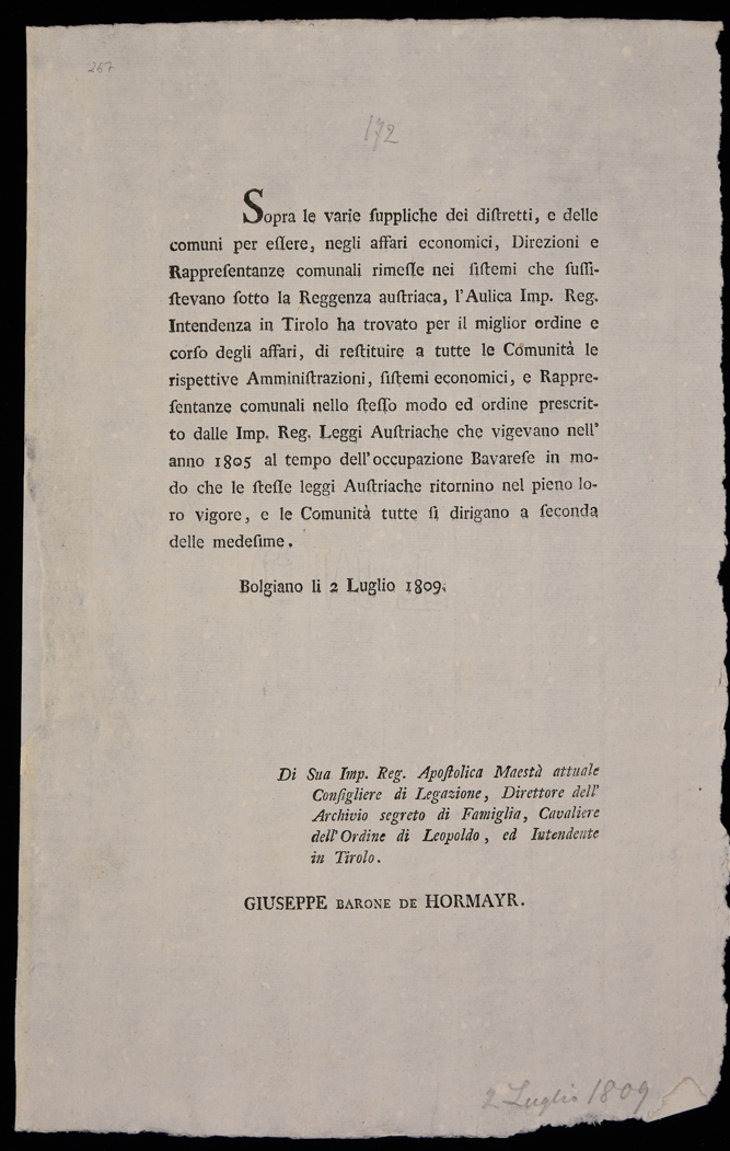 | Sopra le varie suppliche dei distretti e delle comuni per essere, negli affari economici, direzioni e rappresentanze comunali rimesse nei sistemi che sussistevano sotto la reggenza austriaca ... |