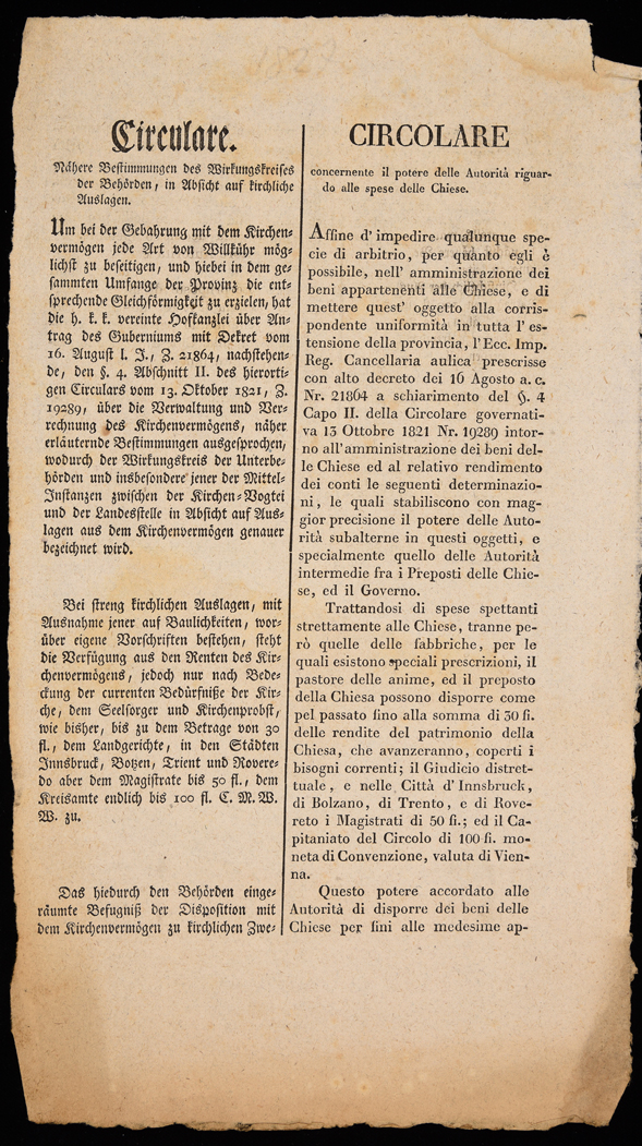 | Circulare, nähere Bestimmungen des Wirkungskreises der Behörden in Absicht auf kirchliche Auslagen |
