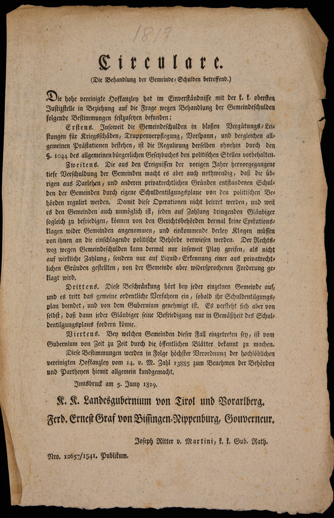 | Circulare (die Behandlung der Gemeinde-Schulden betreffend) |
