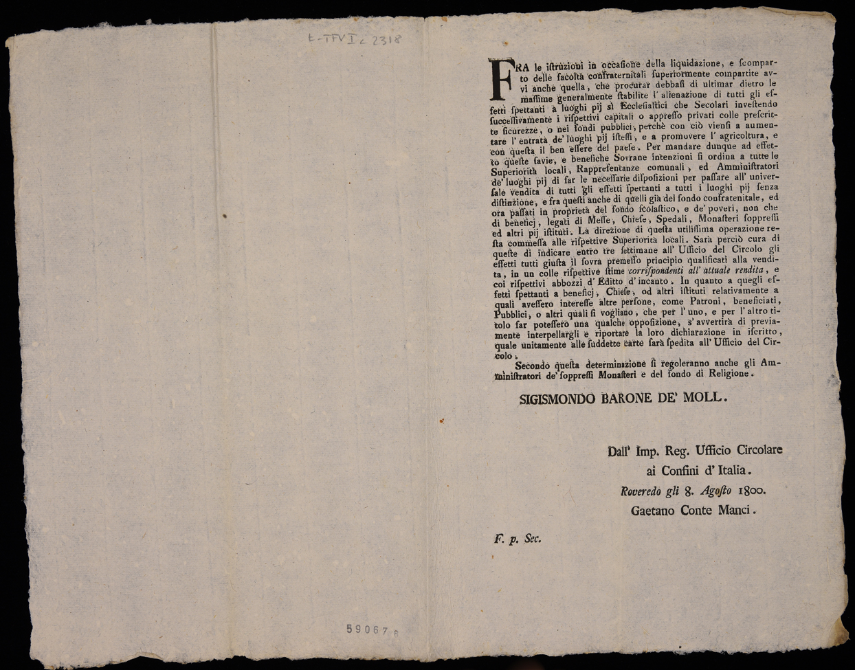 | Fra le istruzioni in occasione della liquidazione e scomparto delle facoltà confraternitali ... |