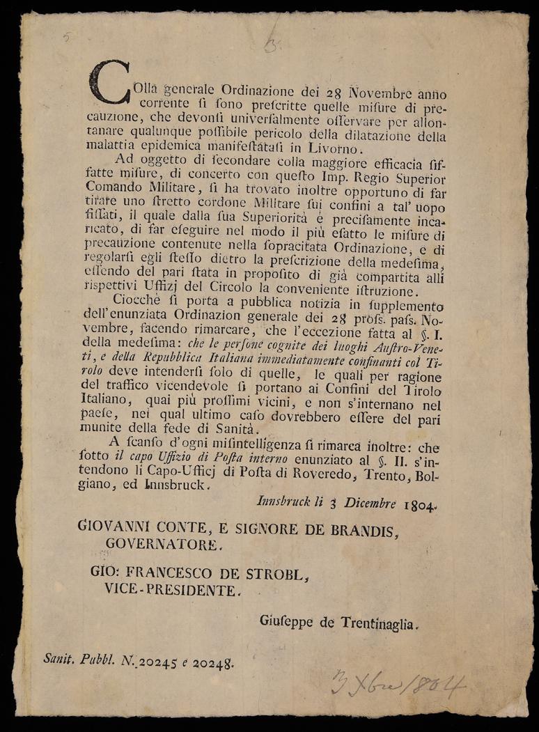 | Colla generale ordinazione dei 28 novembre anno corrente si sono prescritte quelle misure di precauzione ... |