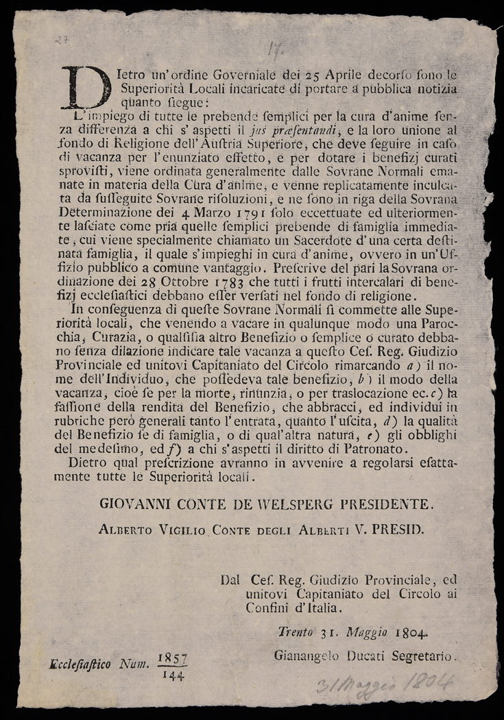 | Dietro un'ordine governiale dei 25 aprile decorso sono le superiorità locali incaricate di portare a pubblica notizia quanti siegue ... |