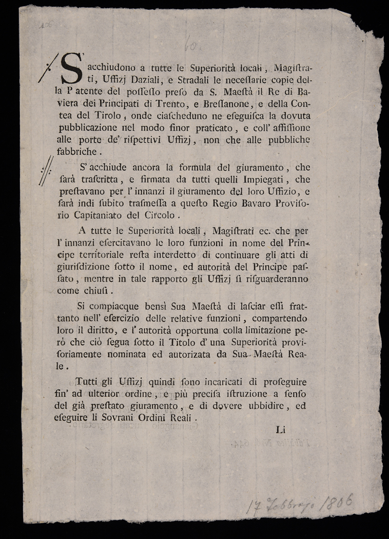 S'acchiudono a tutte le superiorità locali, magistrati, uffizj daziali, e...