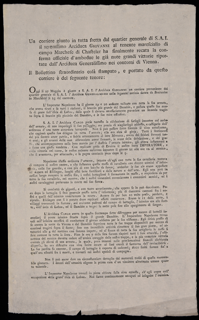 | Un corriere giunto in tutta fretta dal quartier generale di S.A.I. il serenissimo arciduca Giovanni al tenente maresciallo di campo marchese di Chasteler ... |
