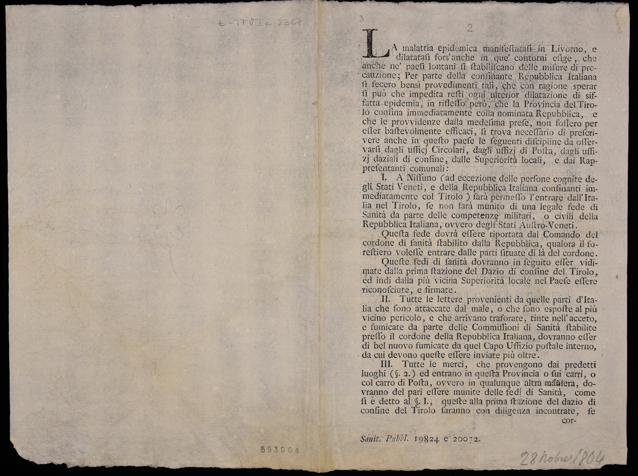 | La malattia epidemica manifestatasi in Livorno, e dilatatasi fors'anche in que' contorni esige, che anche ne' paesi lontani si stabiliscano delle misure di precauzione ... |
