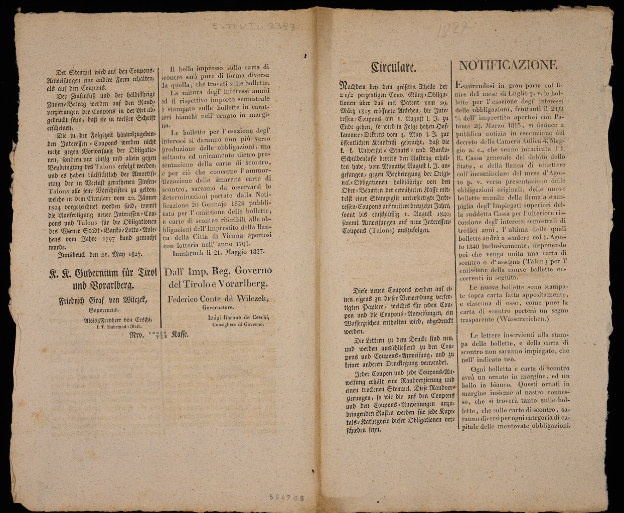 Nachdem bey dem grössten Theile der 21/2 perzentigen Conv. Münz-Obligationen über das mit Patent vom 29. März 1815 eröffnete Anlehen ...