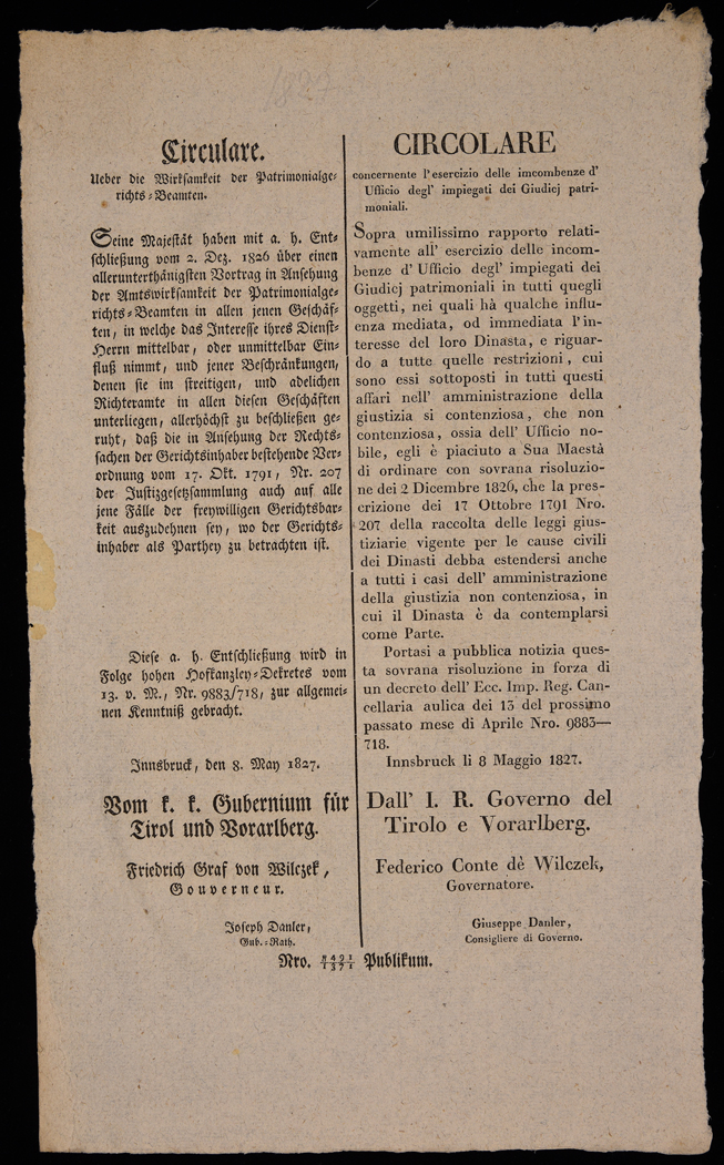 | Circulare über die Wirksamkeit der Patrimonialgerichts-Beamten |