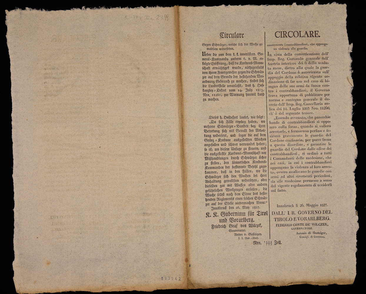 | Circolare concernente i contrabbandieri, che oppongono violenza alla guardia |