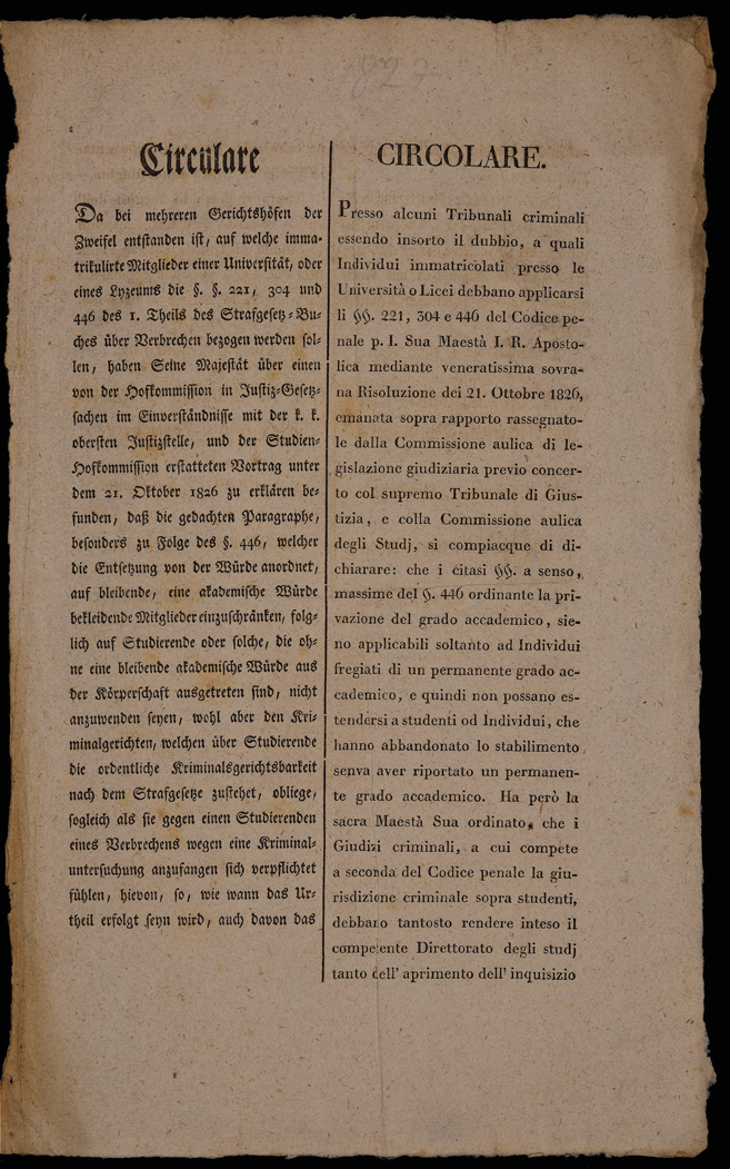 Da bei mehreren Gerichtshöfen der Zweifel entstanden ist, auf welche immatrikulirte Mitglieder einer Universität, oder eines Lyzeums ...