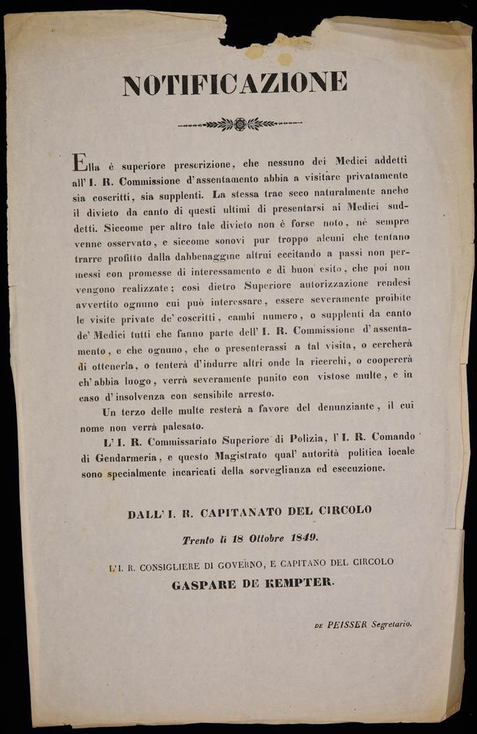 Ella è superiore prescrizione, che nessuno dei medici addetti all'I.R. Commissione d'assentamento abbia a visitare privatamente sia coscritti, sia supplenti ...