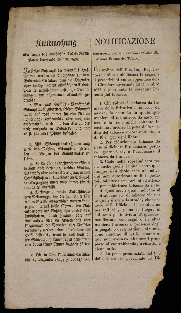 | Kundmachung über einige das allerhöchste Tabak-Gefäll-Patent betreffend Bestimmungen |