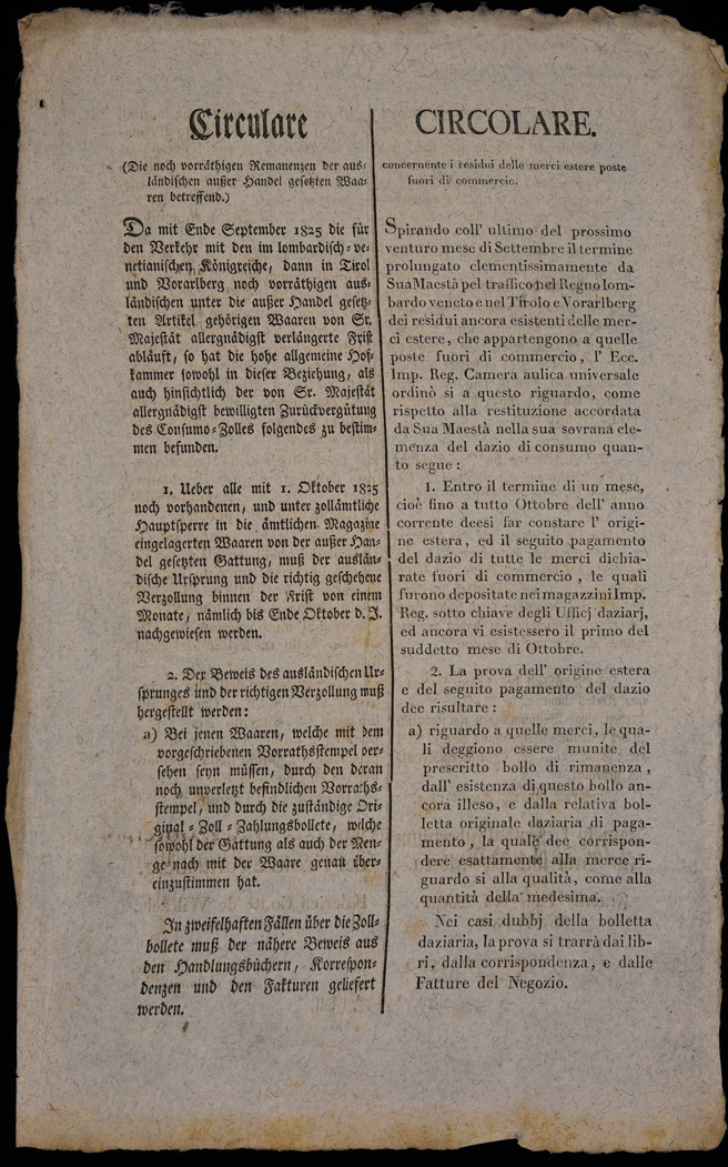 | Circulare (die noch vorräthigen Remanenzen der ausländischen ausser Handel gesetzen Waaren betreffend) |