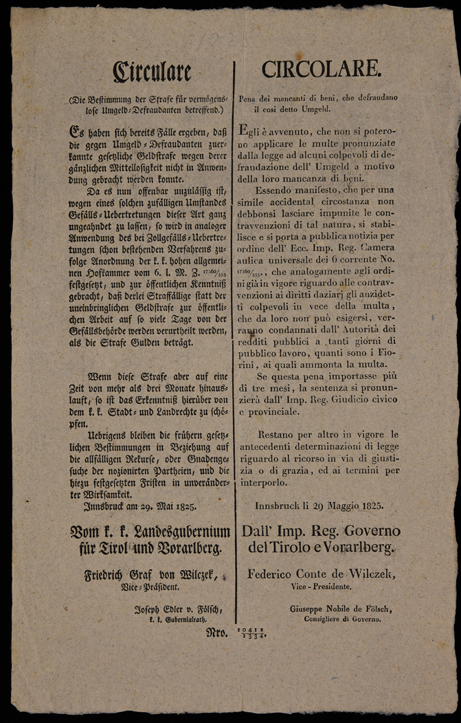 | Circolare. Pena dei mancanti di beni, che defraudano il cosi detto Umgeld |