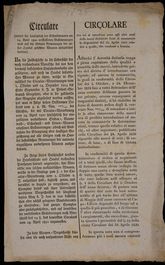 Circolare (womit die hinsichtlich der Schnittwaaren am 24. April 1820...