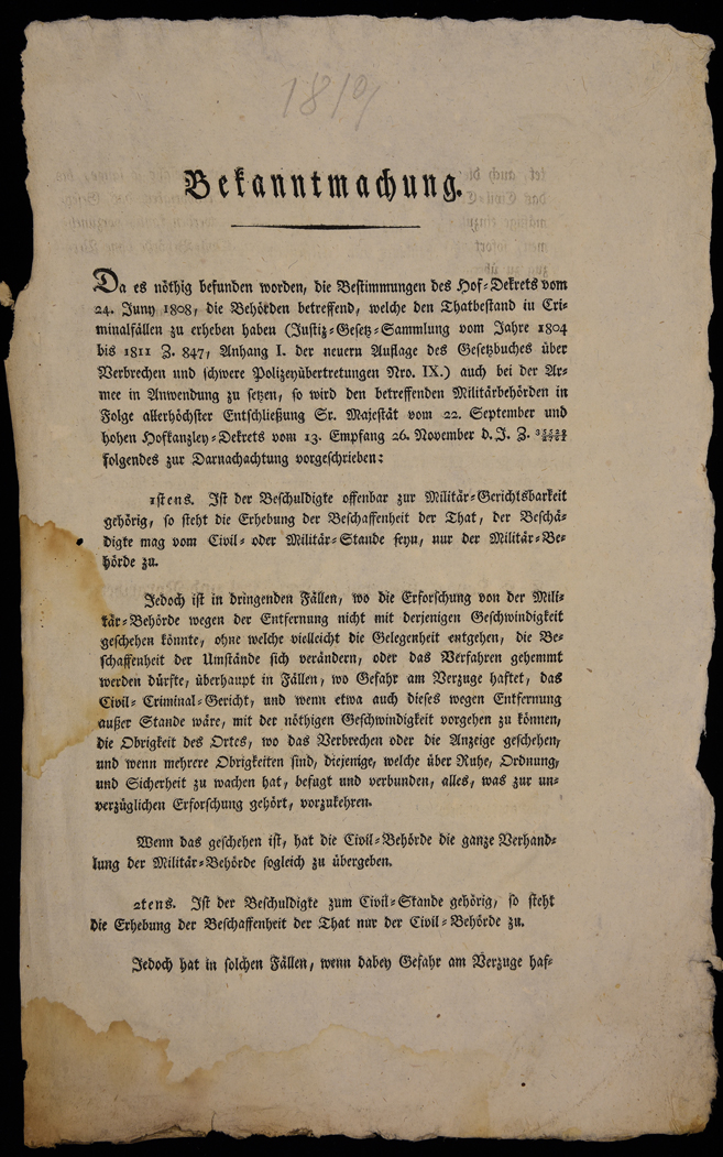 Da es nöthig befunden worden, die Bestimmung des Hof-Dekrets vom 24 Juny 1808, die Behörden betreffend ...