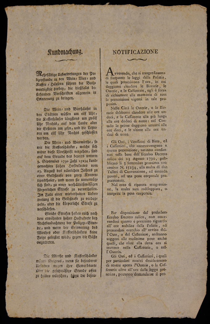 Mehrsältige Uebertretungen der Polizeystunde in den Wein-Bier-und Kaffe-Häusern ...