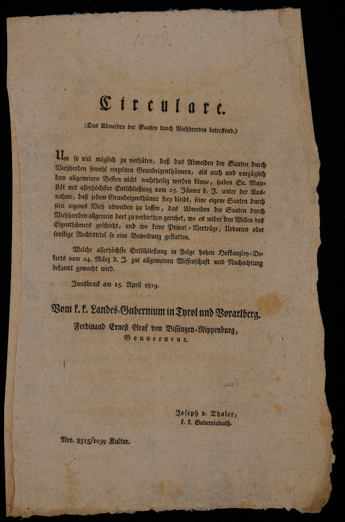 | Circulare (das Abweiden der Staaten durch Biehheerden betreffend) |