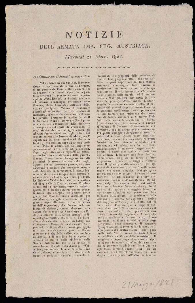 | Notizie dell'Armata imp. reg. austriaca. Mercoledì 21 marzo 1821 |