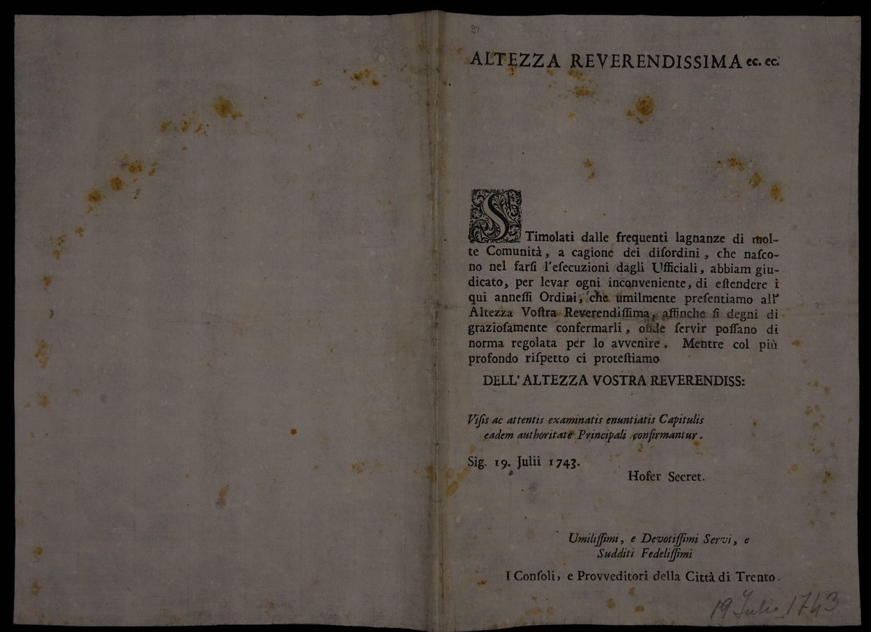 Stimolati dalle frequenti lagnanze di molte comunità, a cagione dei disordini, che nascono nel farsi l'esecuzione dagli ufficiali ...