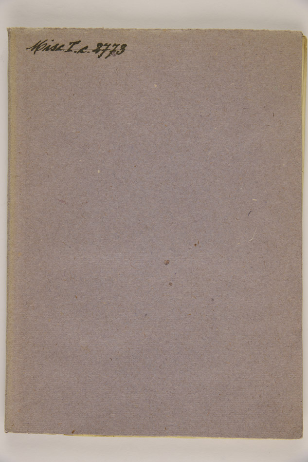 Legato in cartoncino vinaccia, mm. 200x145, ex libris della Biblioteca al verso del piatto anteriore, timbro della Biblioteca al frontespizio, antica segnatura di collocazione: Misc. T c 2773.