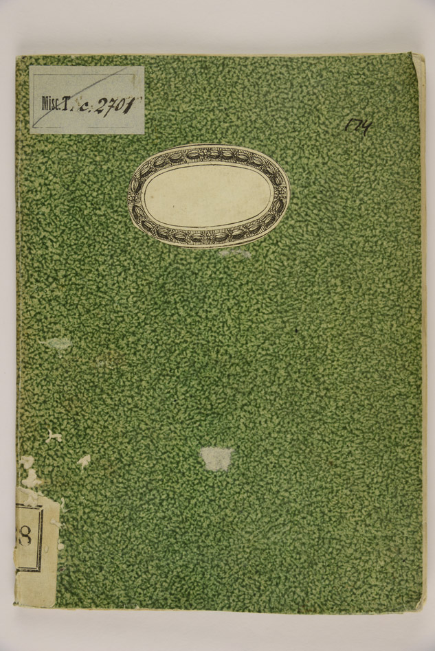 Legato in cartoncino rigido, talloncino cartaceo al dorso con antica segnatura di collocazione, mm. 200x140, carta di guardia ant. e post., ex libris della Biblioteca al verso del piatto anteriore, timbro della Biblioteca al frontespizio, provenienza: Collezione Mazzetti, antiche segnature di collocazione: 688 (Mazzetti, al dorso), Misc. T c 2701 (Comunale).