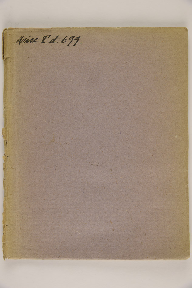Legato in cartoncino vinaccia, mm. 185x145, ex libris della Biblioteca al verso del piatto anteriore, numero 13 manoscritto nel margine superiore esterno del frontespizio, timbro della Biblioteca al frontespizio, numero d'inventario P/8023 a c. E4r, antica segnatura di collocazione: Misc. T d 699.