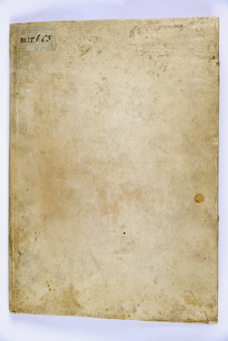 Legatura in piena pergamena rigida, dorso con rinforzo in pergamena, mm. 295x210x5, c. di guarda ant. e post., nota manoscritta di Giovanni a Prato relativa al contenuto del testo al verso della c. di guardia ant., note manoscritte in ebraico al frontespizio (di possesso?) e a c. 4(2)r, prove di penna e disegni al recto del piatto anteriore. L’esemplare presenta la c. π1(3) legata prima di c. π1(2). Antiche segnature di collocazione della Comunale: 3649/9 (al piatto ant.), Misc. TT b 63, G 2 d 68.