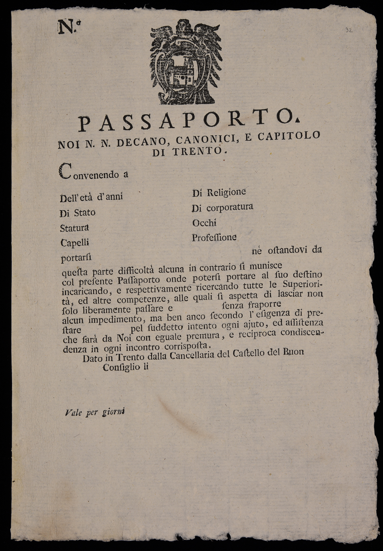 | Passaporto. Noi N.N. decano, canonici, e Capitolo di Trento |