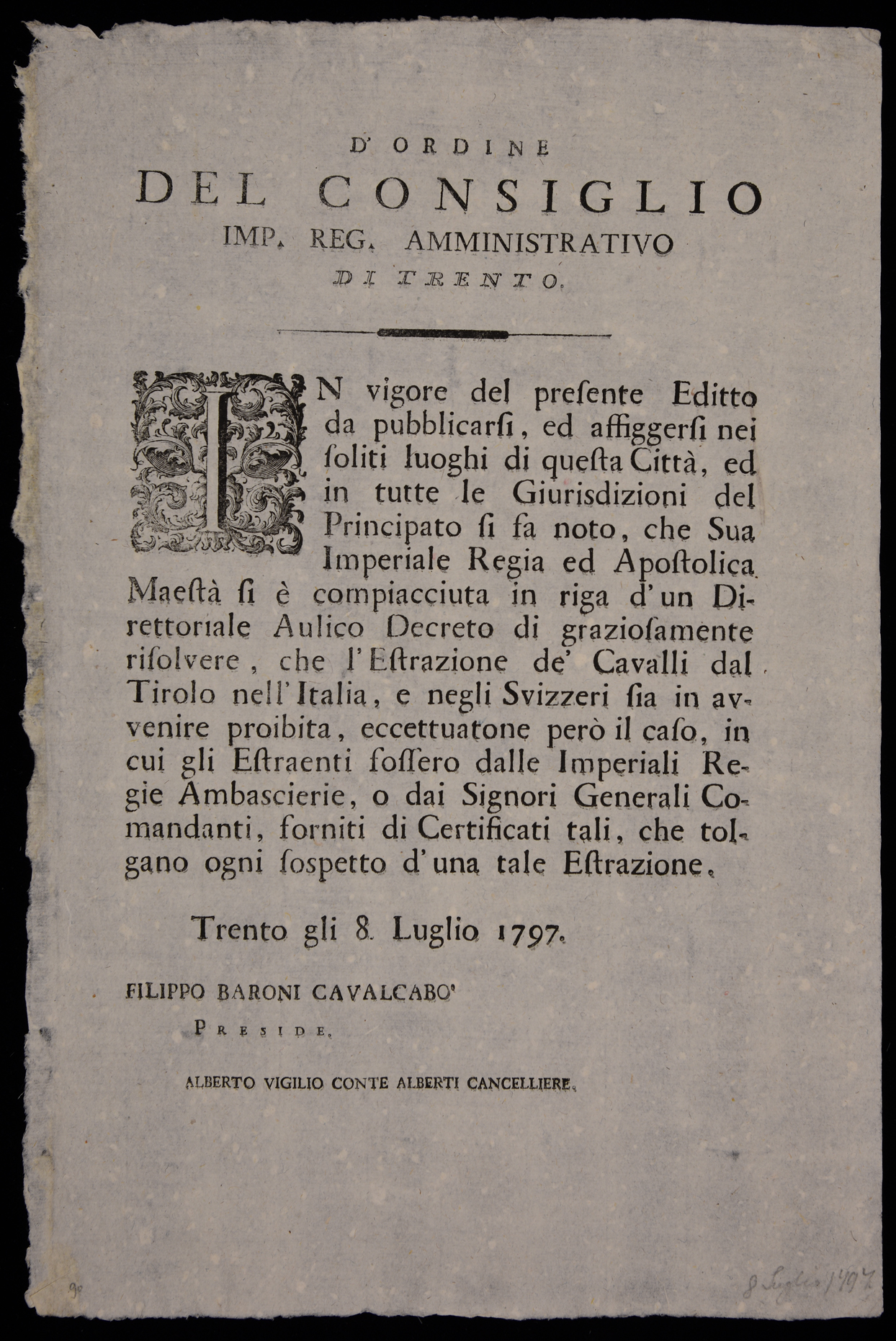 D'ordine del Consiglio Imp. Reg. amministrativo di Trento