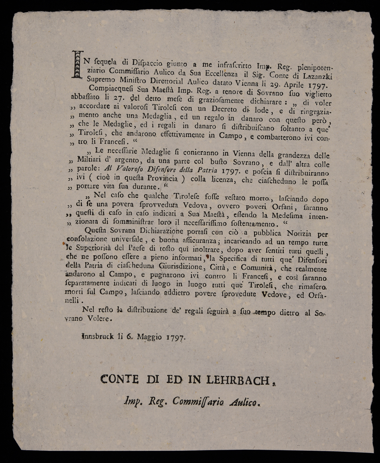 | In sequela di dispaccio giunto a me infrascritto Imp. Reg. plenipotenziario commissario aulico ... |