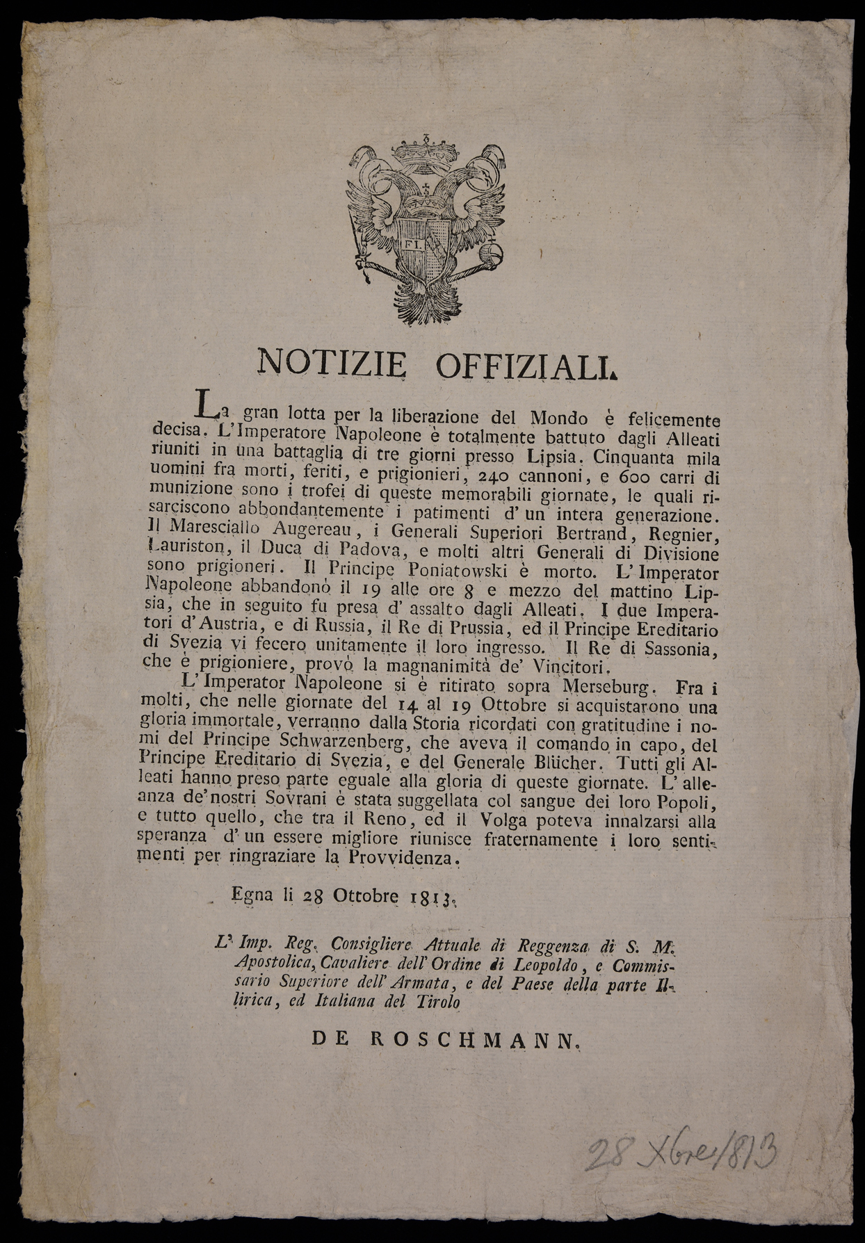 La gran lotta per la liberazione del mondo è felicemente decisa. L'imperatore Napoleone è totalmente battuto dagli alleati ...