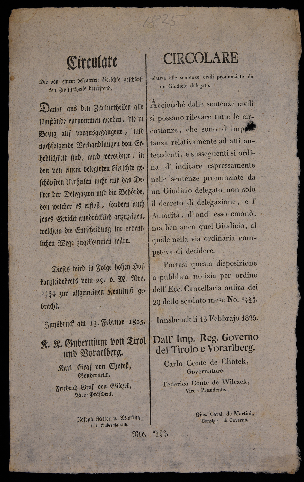 | Circulare die von einem delegirten Gerichte gescöpften Zivilurtheile betreffend |