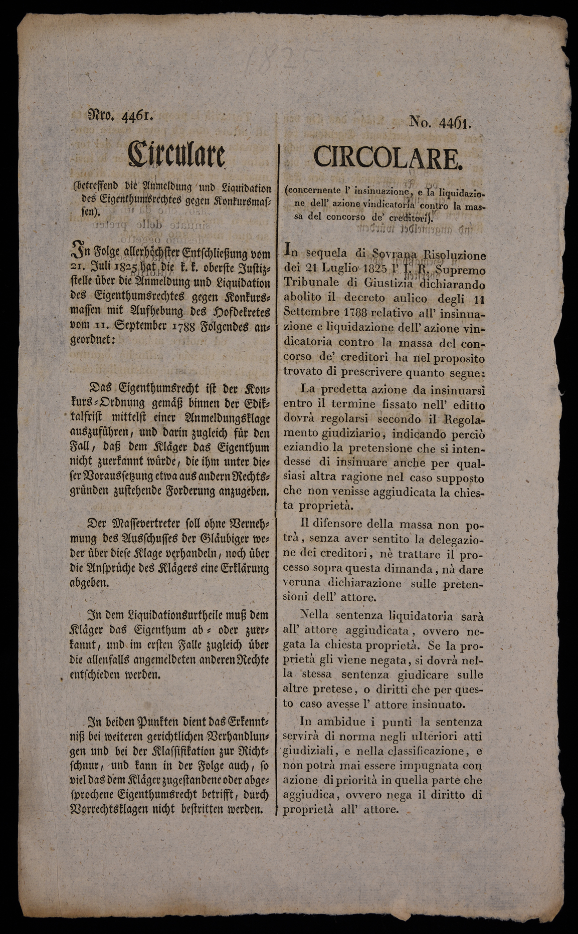 | Circolare (concernente l'insinuazione, e la liquidazione dell'azione vindicatoria contro la massa del concorso de' creditori) |