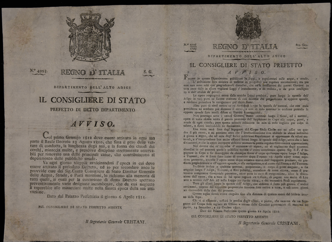 | Dipartimento dell'Alto Adige. Il consigliere di Stato, prefetto di detto Dipartimento, avviso |