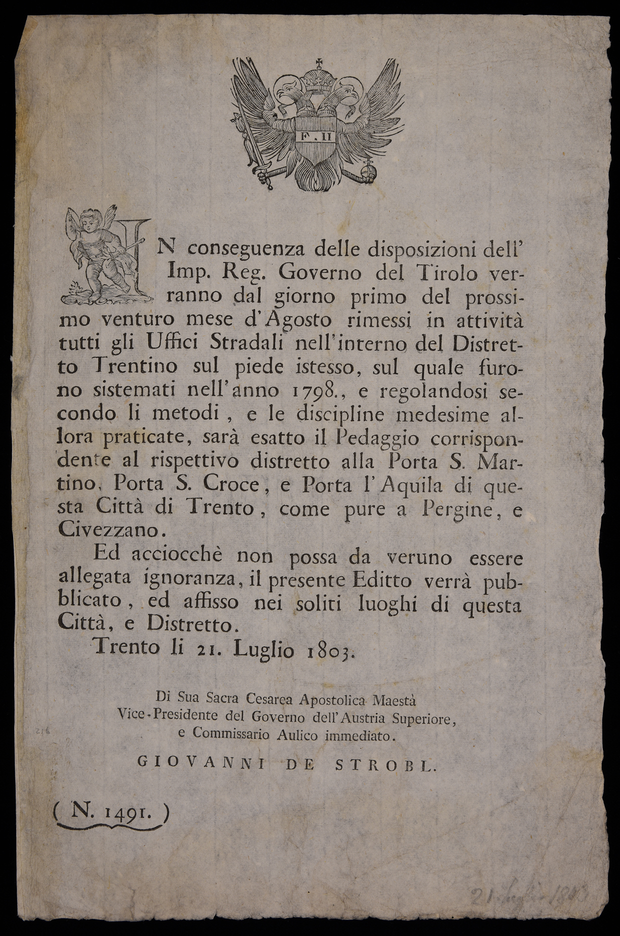 In conseguenza delle disposizioni dell'Imp. Reg. Governo del Tirolo verranno...