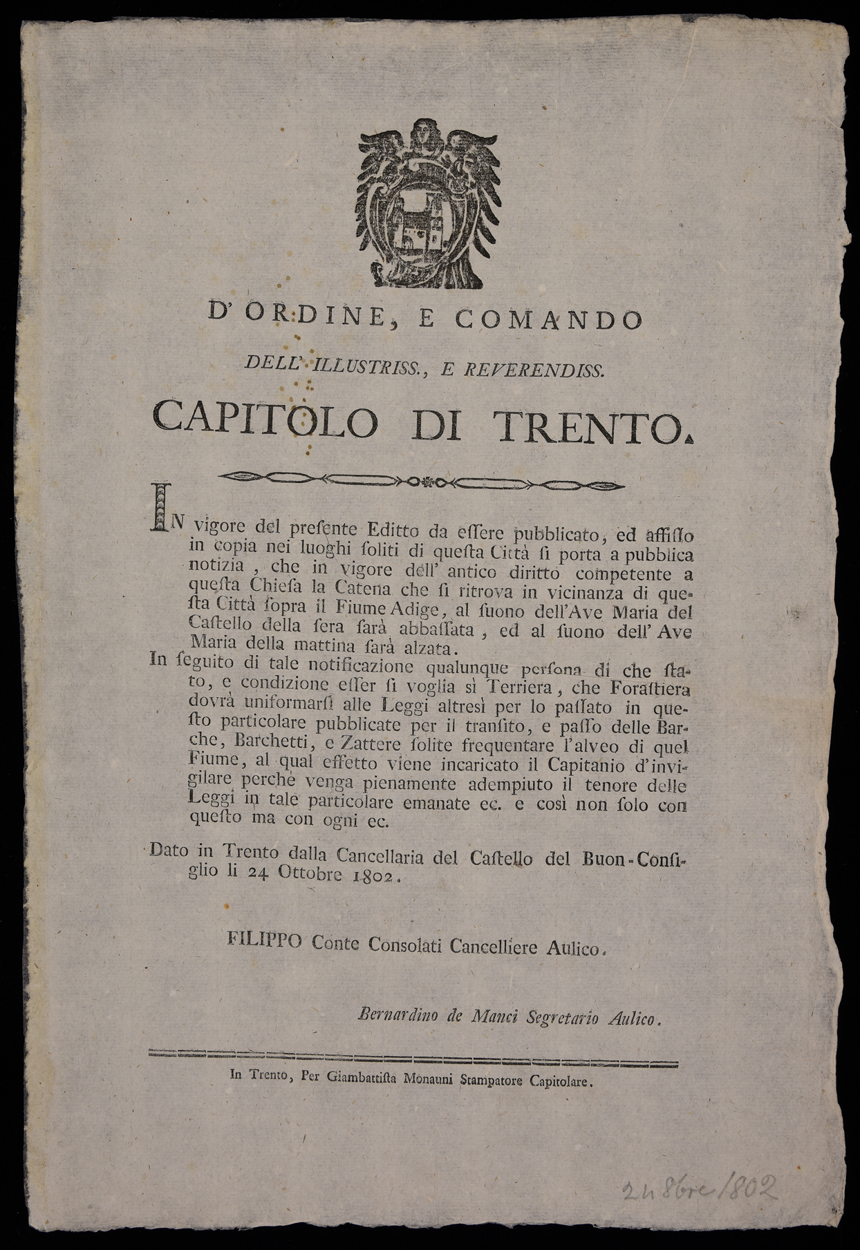| D'ordine e comando dell'illustriss. e reverendiss. Capitolo di Trento |