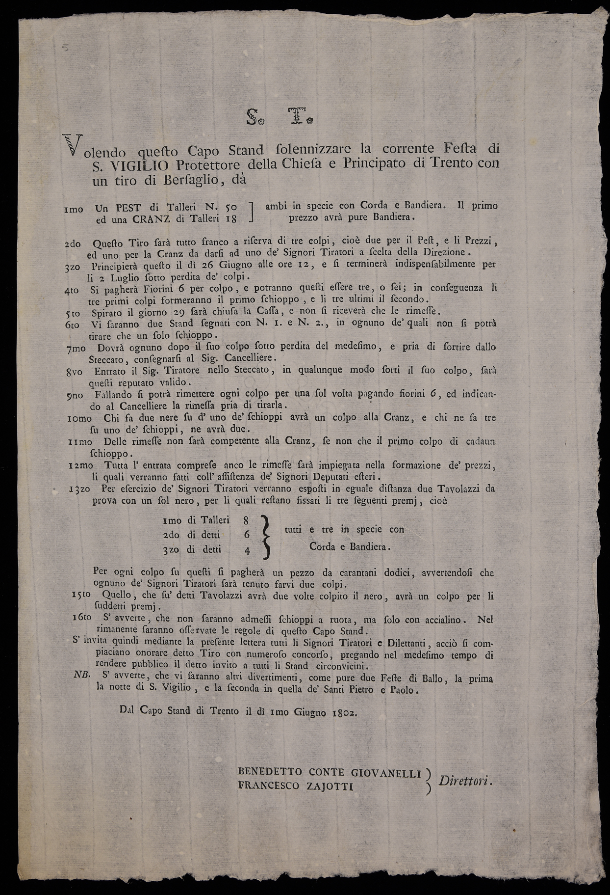 | S.T. Volendo questo capo stand solennizzare la corrente feste di s. Viglio ... |