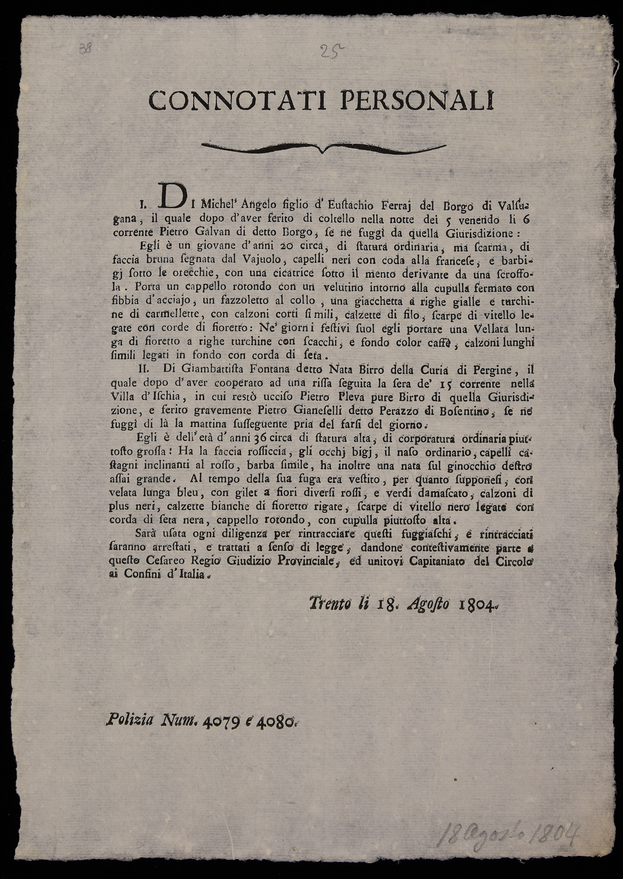 Di Michel'Angelo figlio d'Eustachio Ferrai del Borgo di Valsugana ...