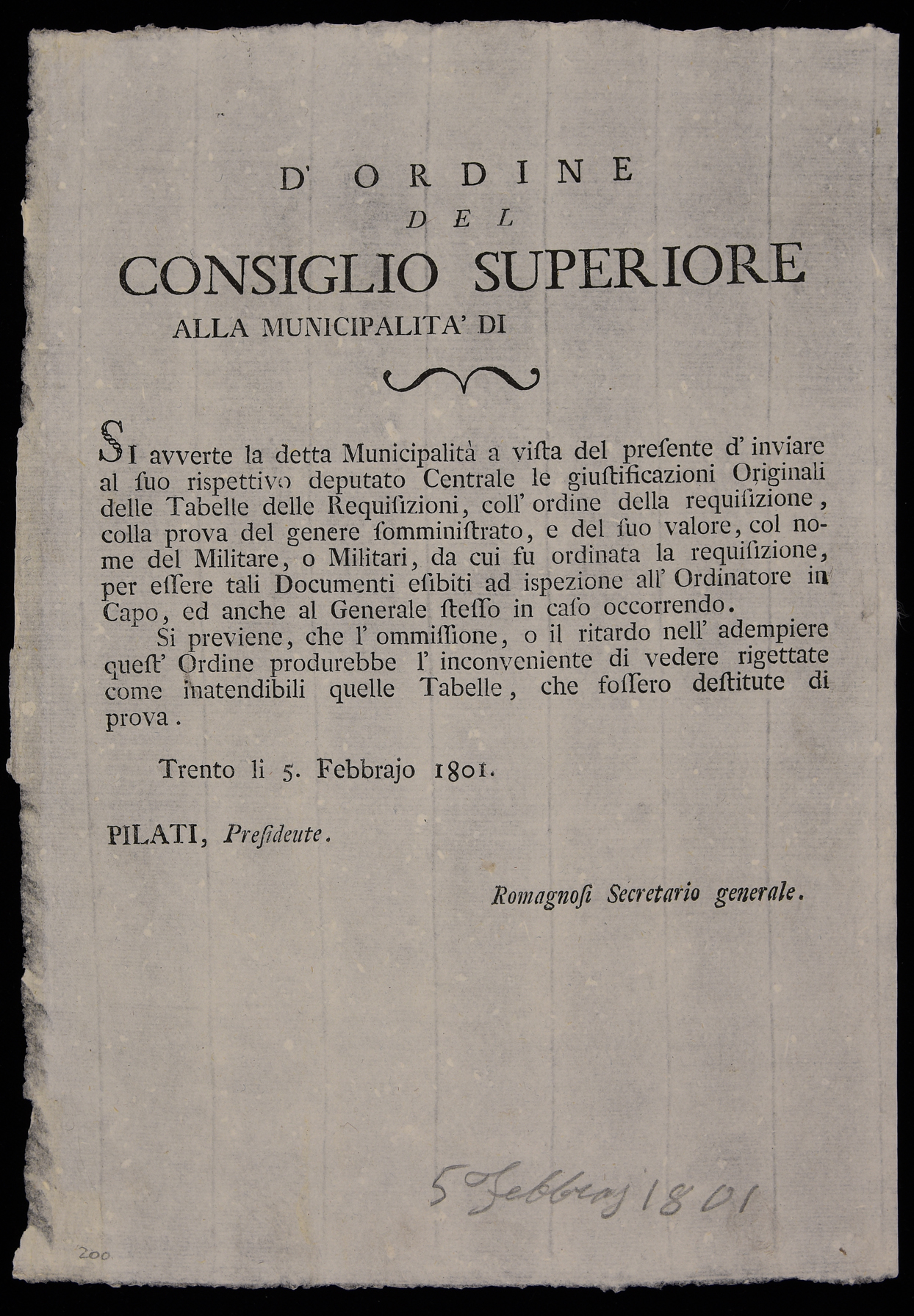 D'ordine del Consiglio superiore alla municipalità di [...]