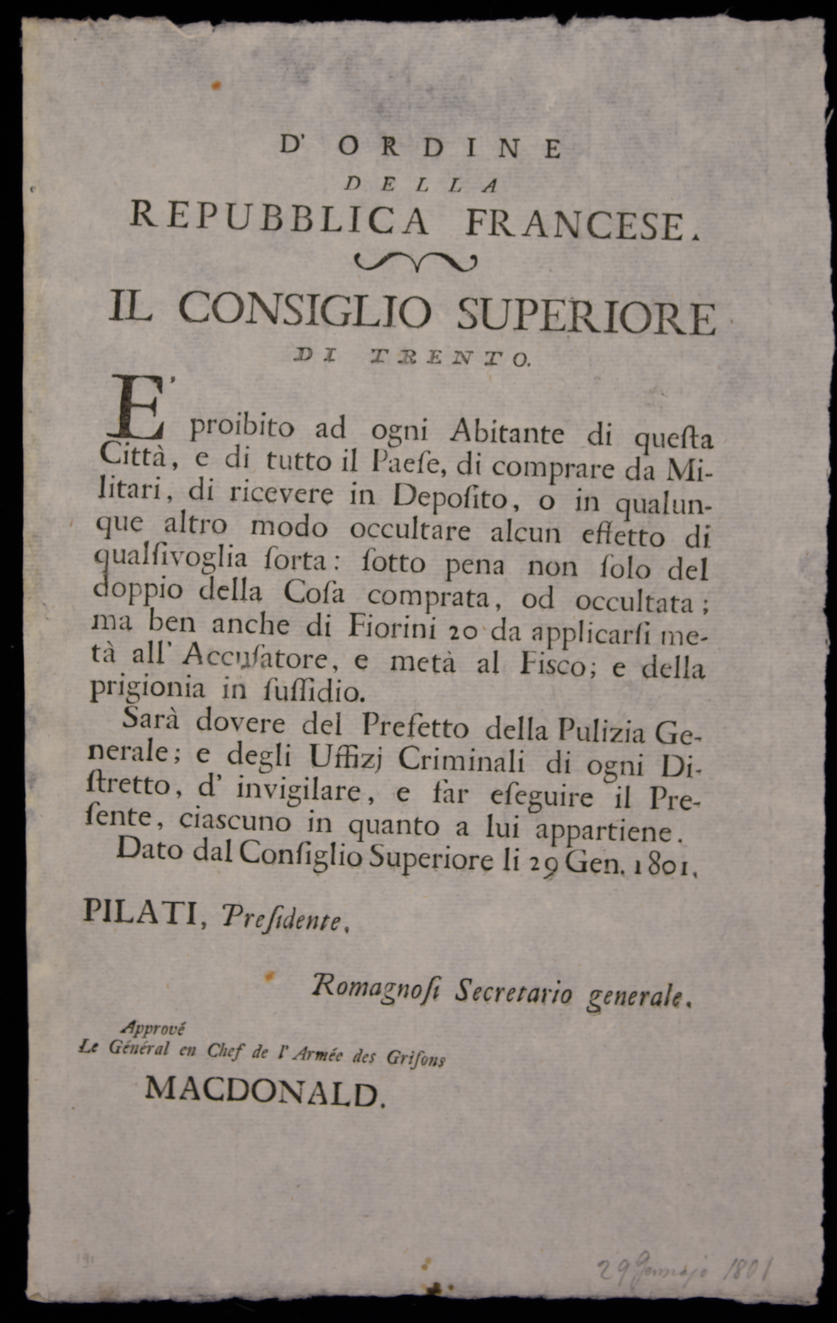 D'ordine della Repubblica francese, il Consiglio superiore di Trento