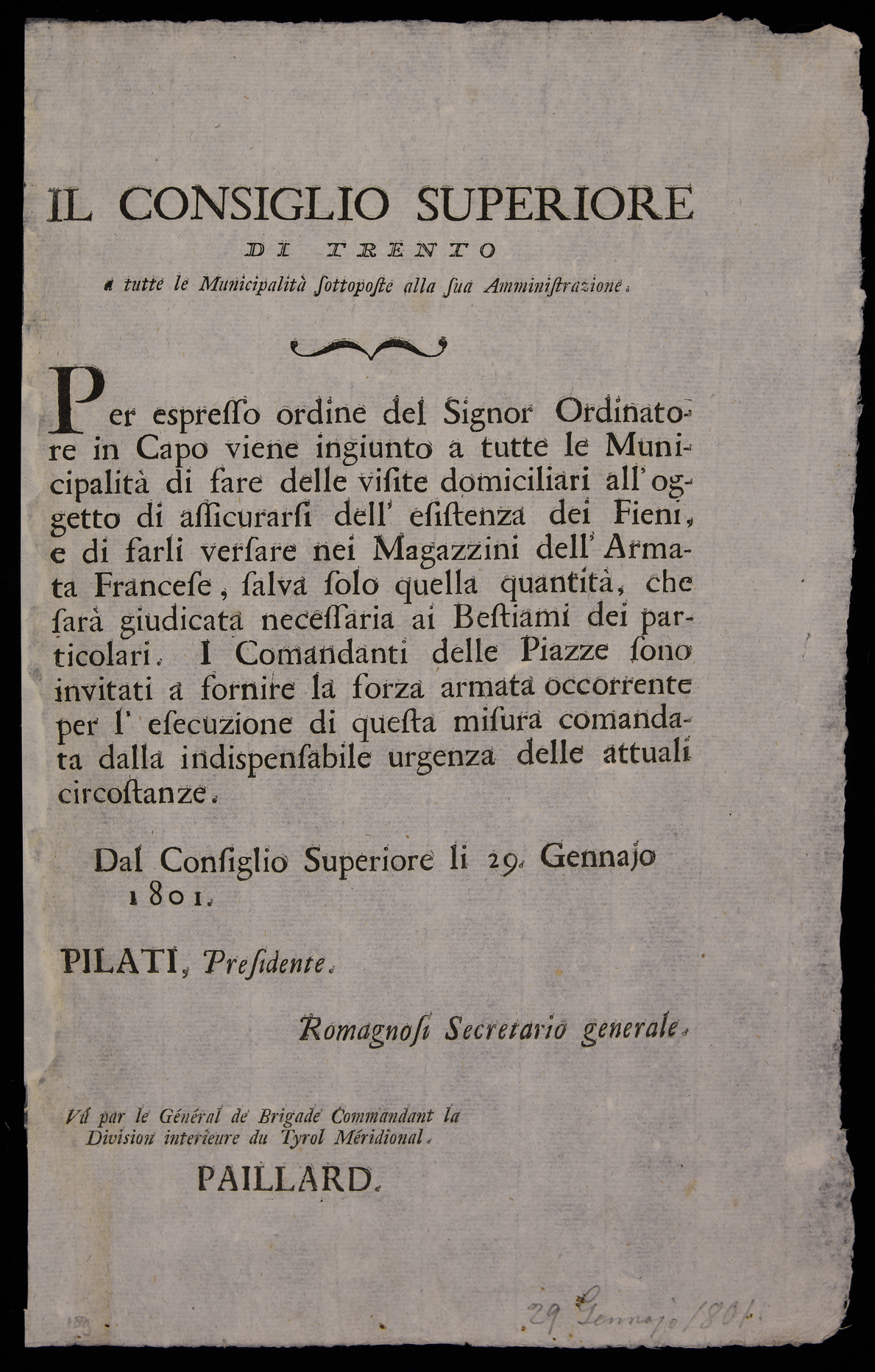 | Il Consiglio superiore di Trento a tutte le municipalità sottoposte alla sua amministrazione |