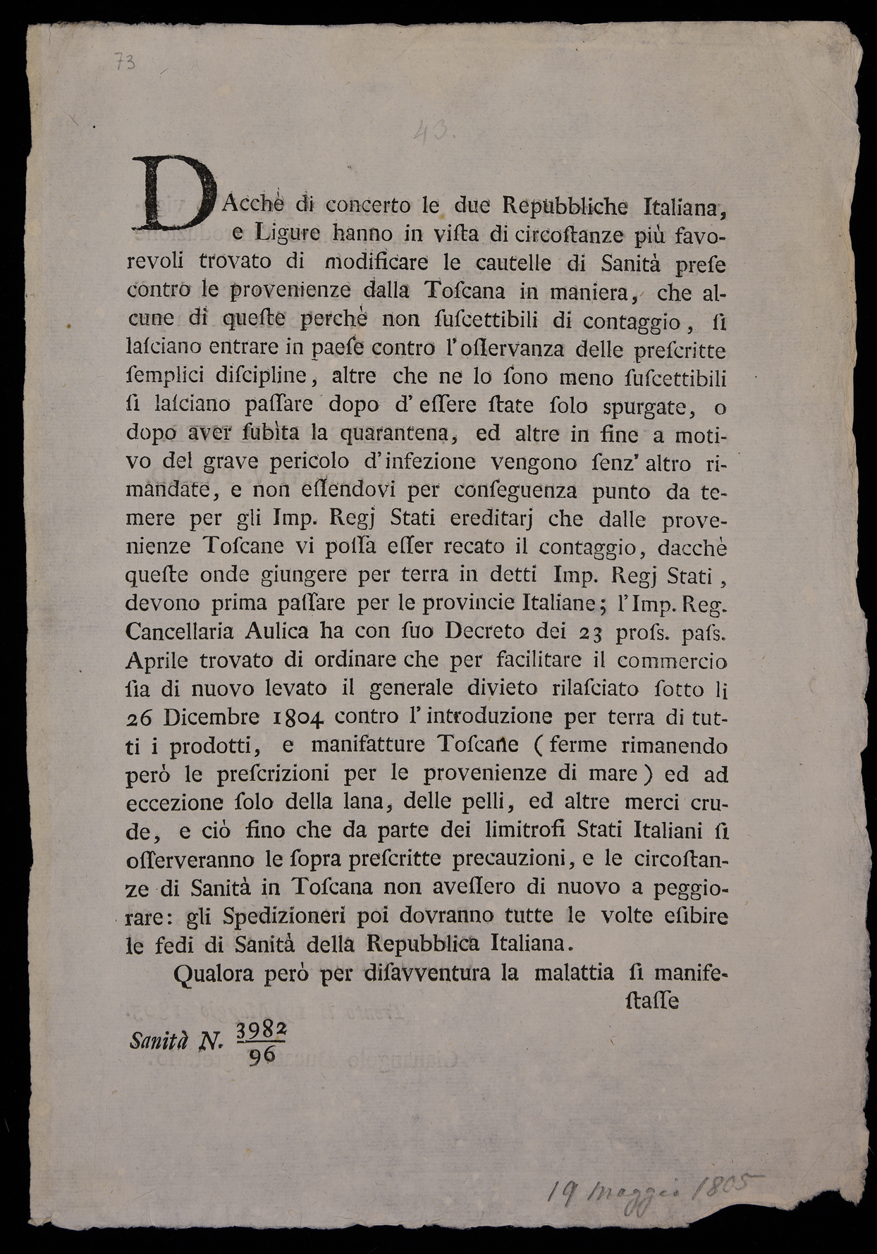 | Dacchè di concerto le due repubbliche italiana e ligure hanno in vista di circostanze più favorevoli trovato di modificare le cautelle di sanità ... |
