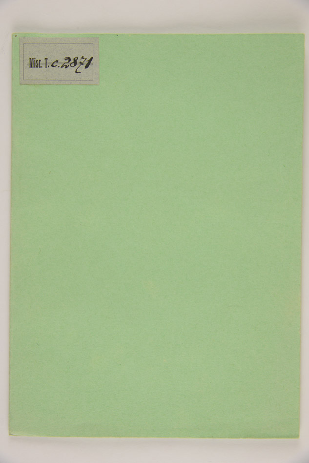 Legato in cartoncino verde, mm. 200x145x5, ex libris della Biblioteca al verso del piatto anteriore, numero 8 manoscritto al margine superiore esterno del frontespizio, timbro della Biblioteca al frontespizio, segno di attenzione a c. A4v, presenza di gore, numero d'inventario P/8422 a c. B4v, antica segnatura di collocazione: Misc. T c 2871.