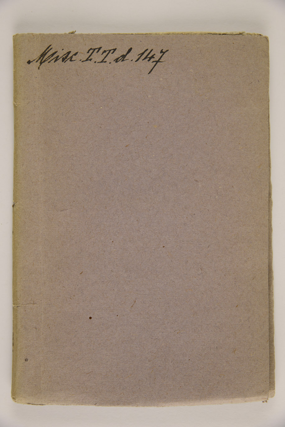 Legatura in cartoncino vinaccia, mm. 160x110, ex libris della Biblioteca al verso del piatto anteriore, l'esemplare - unico a quanto pare - è mutilo delle cc. 11 e 14 e presenta un errore di rilegatura (il frammento della c. 11 si trova dopo c. A6), numero 12 manoscritto in testa al frontespizio, presente anche al margine superiore esterno, numero d'inventario P/7562 a c. B8v, antiche segnature di collocazione: Misc. TT d 147.
