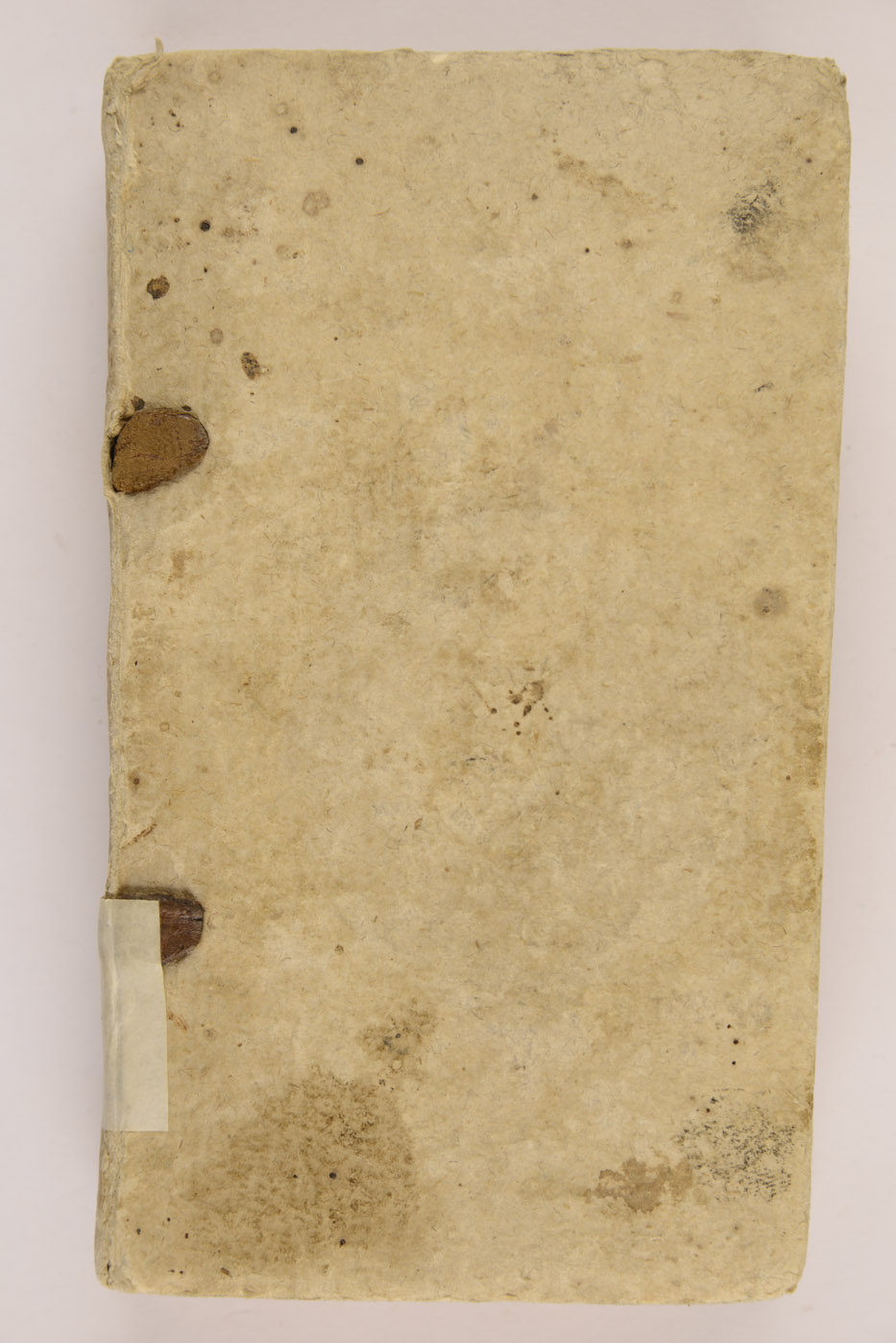 Legatura coeva in cartoncino rigido, mm. 155x90x30, titolo manoscritto al dorso, talloncino al dorso con antiche segnature di collocazione, ex libris della Biblioteca al verso del piatto anteriore, timbro del Collegio serafico dei Francescani di Povo al frontespizio, timbro della Biblioteca alle cc. a1v, R12v e A7r, numero d'inventario 234543 a c. R12v. Provenienza: Convento dei Francescani di Villazzano, antiche segnature di collocazione: I/291, 15323 (Francescani).