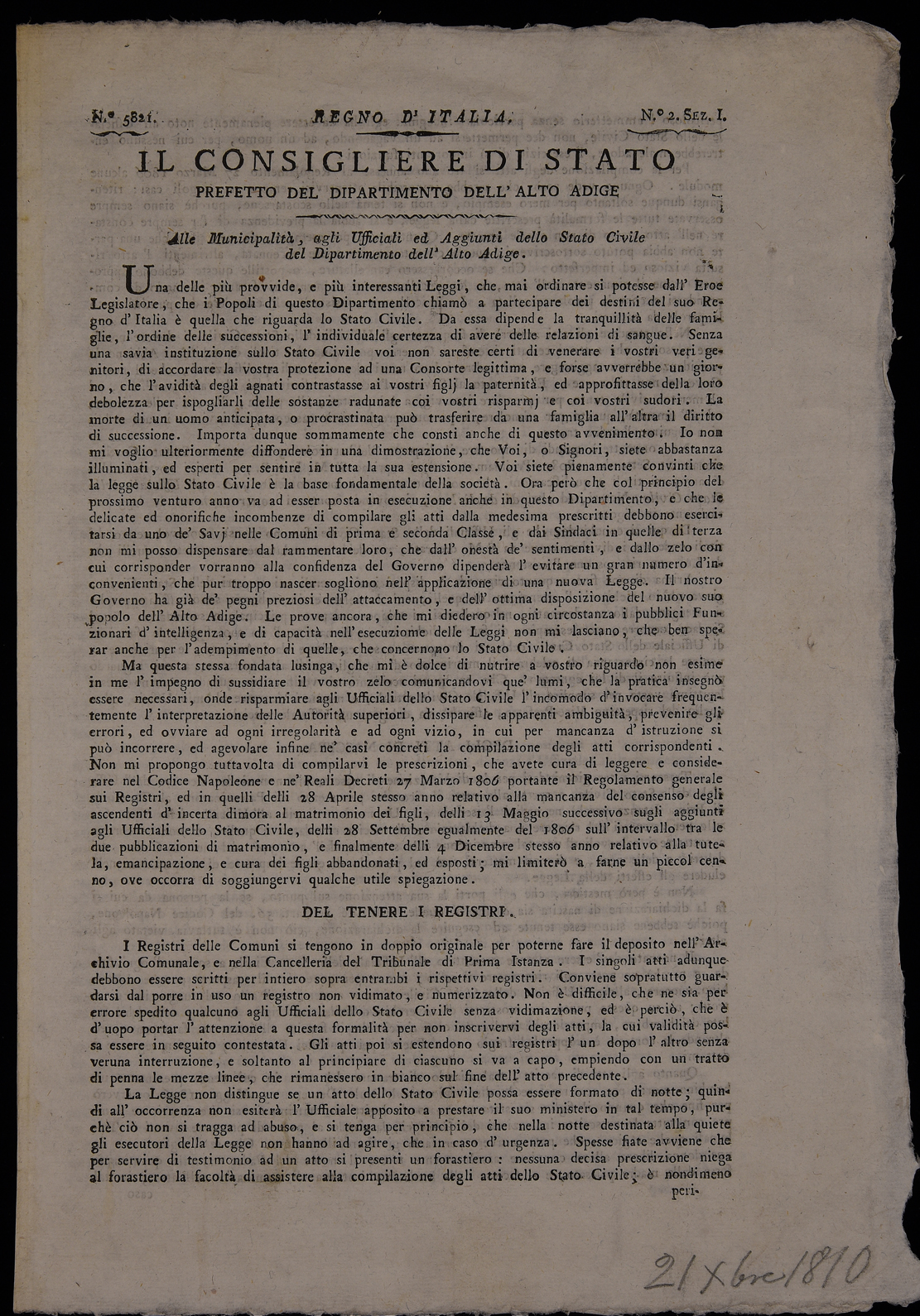 | Il consigliere di Stato prefetto del Dipartimento dell'Alto Adige, alle municipalità, agli ufficiali ... |