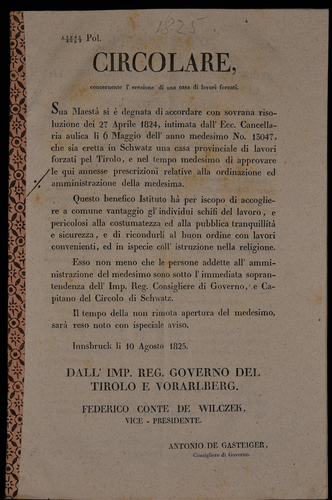 | Circolare, concernente l'erezione di una casa di lavori forzati |
